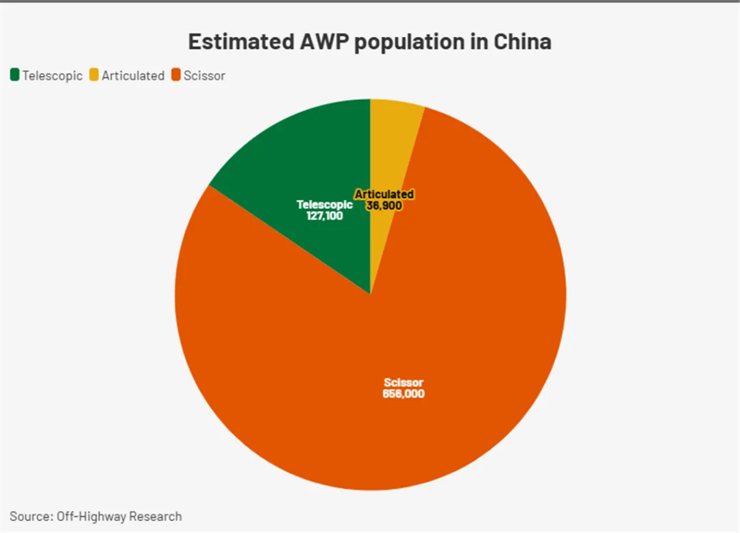 这种情况在占比约80%的剪叉式产品中尤为明显,但臂式产品或许存在机遇。目前直臂式设备主导臂式市场,无疑是过去几年增长主力。曲臂式产品在中国尚未获得广泛认可,表明市场仍不成熟——这或许是机遇所在,但在当前市场周期下注仍需极大勇气。